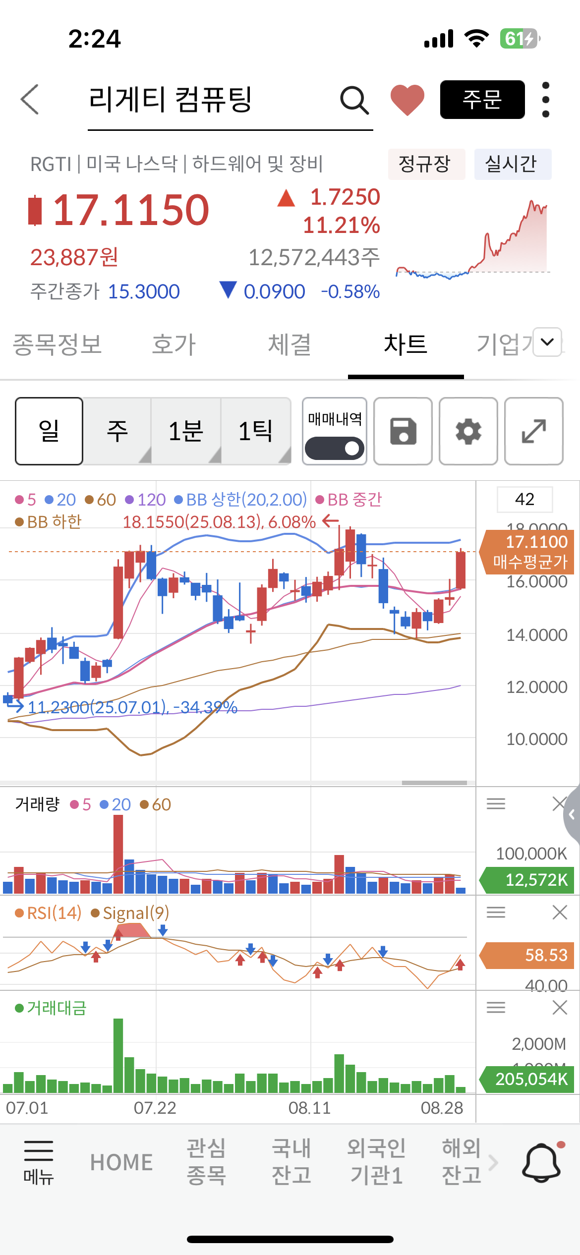 확실히 미장에서 양자 관련주의 대장은 리게티 컴퓨팅(RGTI)인거 같다.