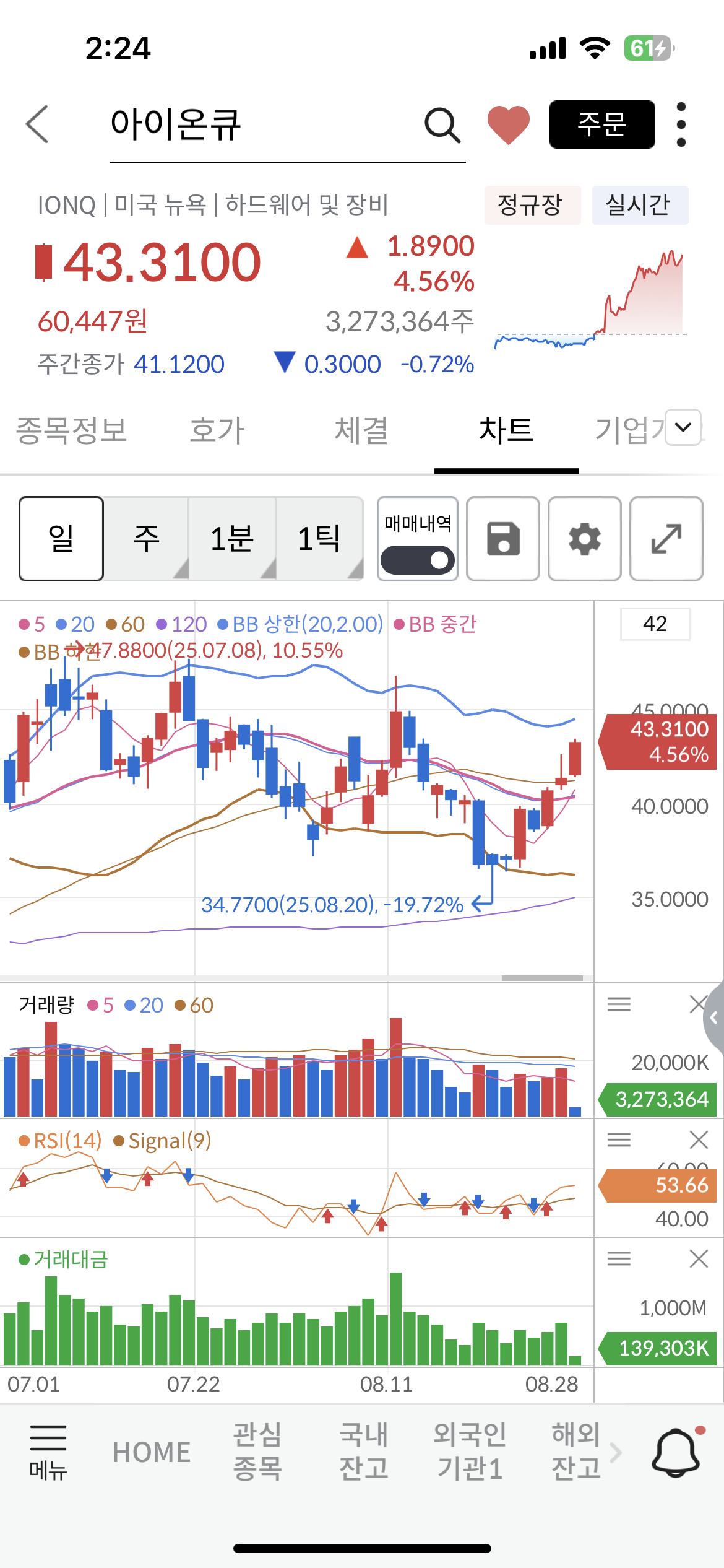 어쩔 땐 아이온큐(IONQ)가 많이 오를 때도 있었지만 아이온큐 전체 시가총액의 32.7%가 대한민국 주주라고 해서 ㅋㅋ