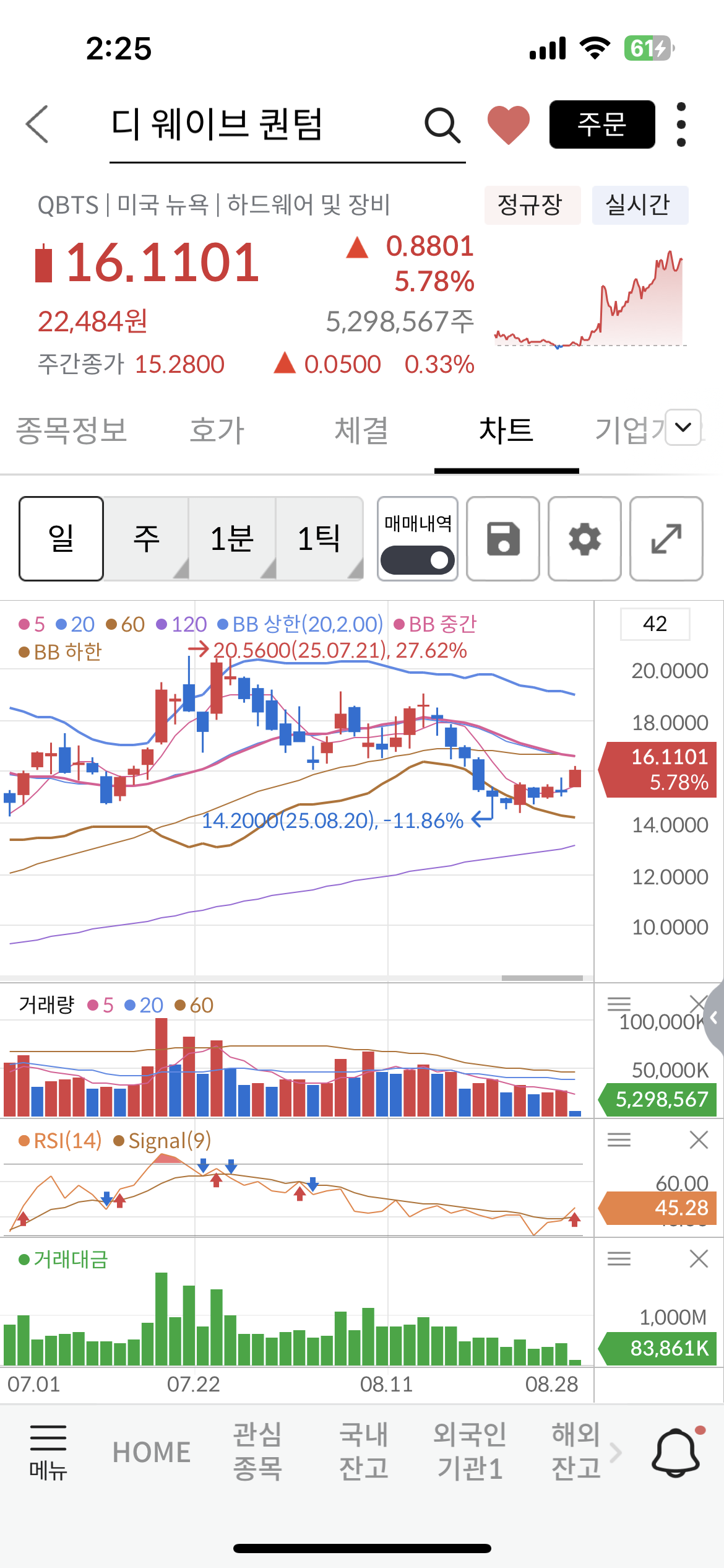 오늘(2025년 8월 29일 새벽2시) 양자 쪽이 순환매인지 이후에 나올 트럼프 대통령 행정명령 때문인지 알 수 없는 이유로 오르고 있는데 이 양자 테마 중에서 리게티 컴퓨팅이 11%정도 상승, 아이온큐는 4.5% 상승, 퀀텀 컴퓨팅은 8.71% 상승, 디 웨이브 퀀텀은 5.65% 상승중이다. (리게티 컴퓨팅의 2025년 8월 28일 기준 공매도 비율도 15%이다)