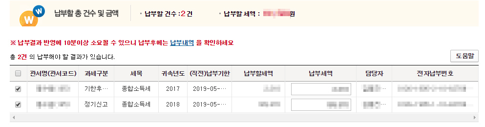 "확인하였습니다."를 체크 후 닫으셔도 되고, 신고 내역을 보시거나 세금을 내셔야 한다면 납부서 조회를 클릭하셔서 세금을 바로 납부하시면 됩니다!