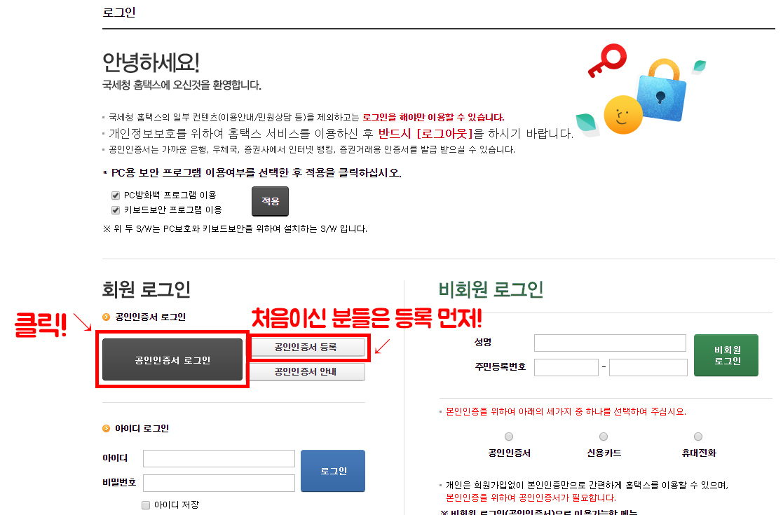 공인인증서 등록 후 확인할 수 있으니 처음이신 분들은 공인인증서 등록부터 하시길 바랍니다!