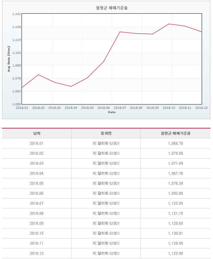 2018년 1월 입금된 금액이 144불이라면 144x1066.70 = \153,604원